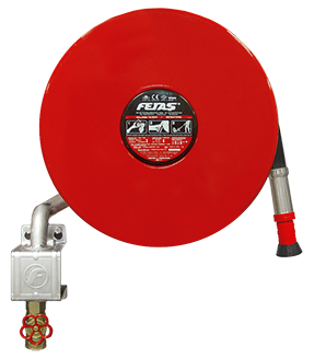 Swinging type fire hose reel with 20m – 30m semi-rigid hose. Demountable fire hose reels suitable for indoor usage, EN 671-1 standard, CE approved.