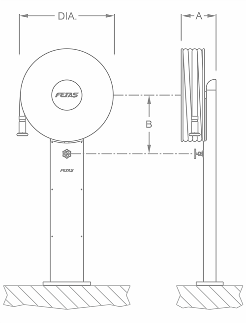 Fetaş F 400 series fire reels are a product group designed for general purpose fire fighting and can be easily used by everyone. It is suitable for applications independent of walls in buildings. It is among the indispensable accessories of today's architects, as well as the functionality of the fire reel, which creates a visual effect in the places where it is used and provides easy access in case of emergency.